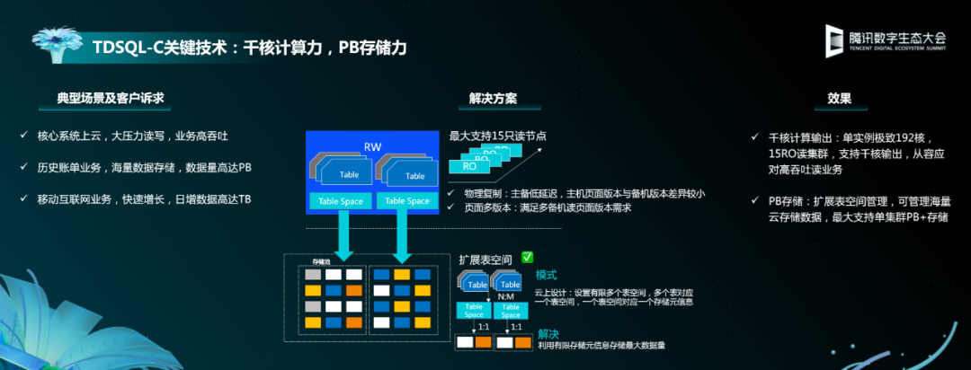 PB存储:扩展表空间管理,可管理海量云存储数据,最大支持单集群PB+存储。