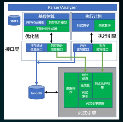 在优化器上面,把以前面向行的优化器进行优化,让它自适应能够进行分析场景算法的调整。