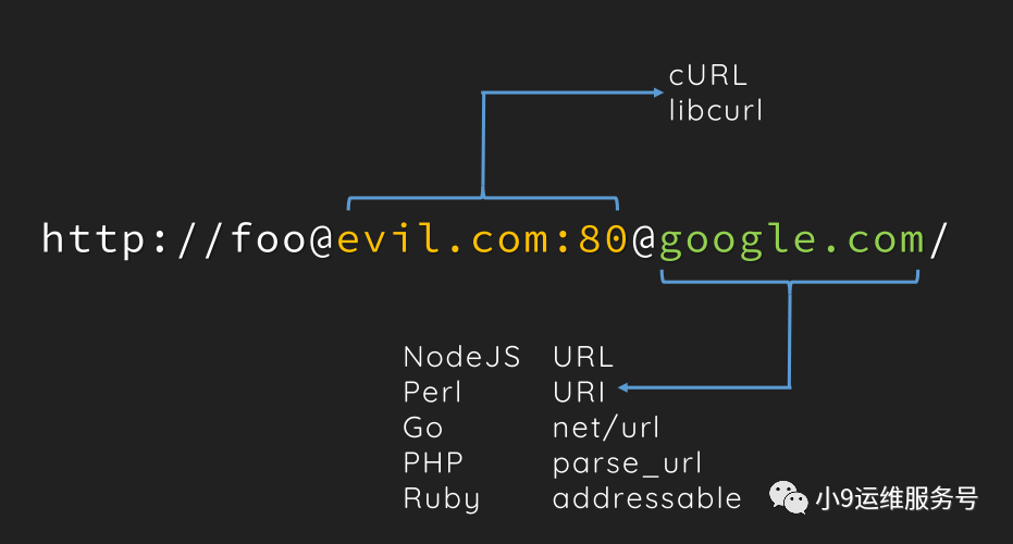 下图的实例中,我们看到上述所述编程语言的解析函数得到的IP是google.com,而cURL请求得到的却是evil.com:80