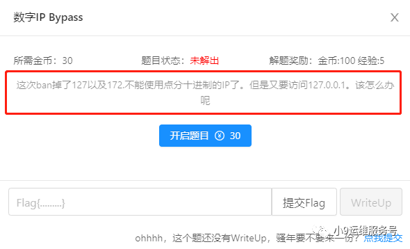 本身做了过滤,尝试数字IP Bypass中的方式,成功拿到flag