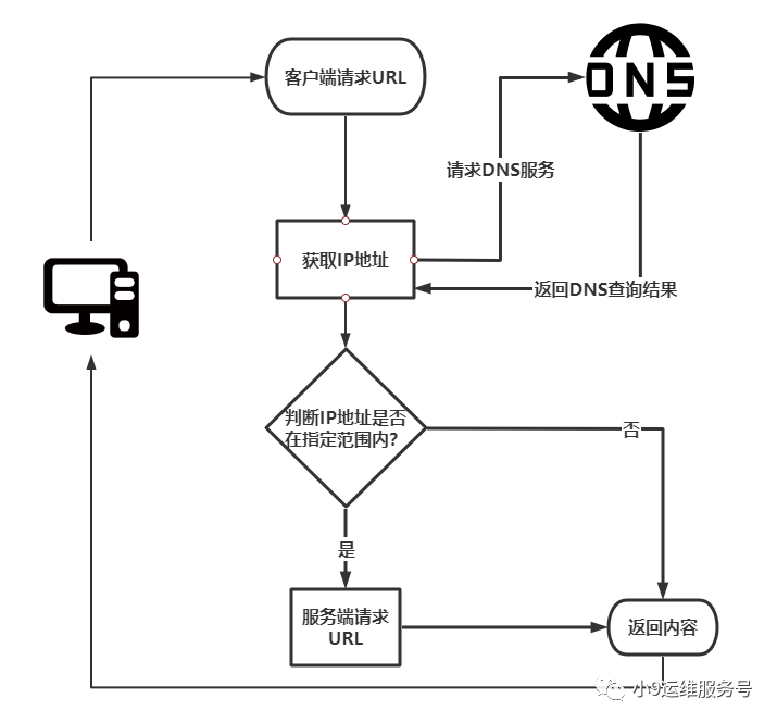 根据流程图:对于用户请求的URL参数,首先服务器端会对其进行DNS解析,然后对于DNS服务器返回的IP地址进行判断,如果在黑名单中,就pass掉