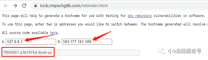 设置好两个地址,就会自动生成域名7f000001.a3b1976d.rbndr.us