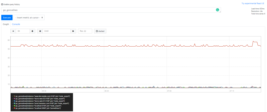 灵活而强大的查询语句(PromQL):在同一个查询语句,可以对多个 metrics 进行乘法、加法、连接、取分数位等操作。