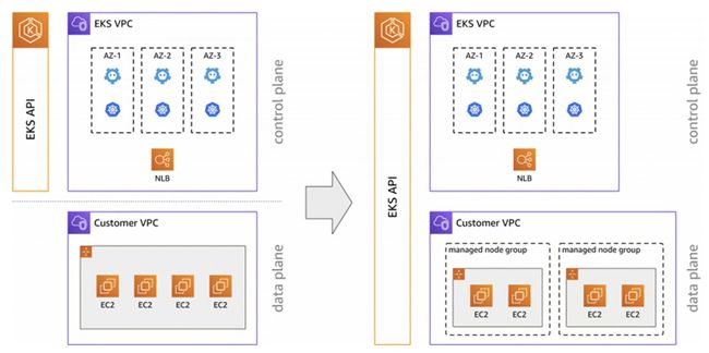 在加入Managed Node Group之后,Amazon EKS的架构如下图所示: