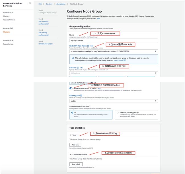 点击 Add Node Group按钮,进入新建Managed Node Group配置页面: