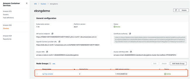 稍等片刻,在Managed Node Group创建成功后,进入到EKS集群的页面,可以查看到创建好的Node Group: