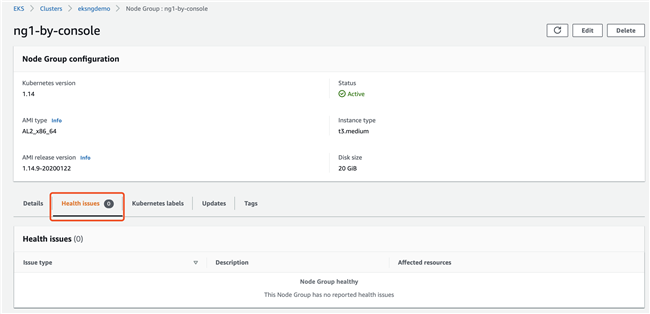 Amazon EKS会自动监控Managed Node Group的健康状况。用户可以通过AWS控制台或者API来查询Managed Node Group的健康状况。