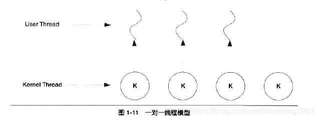 用户线程与系统线程一一对应,用户线程执行如lo操作的系统调用时,来回切换操作开销相对比较大