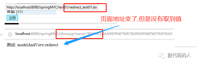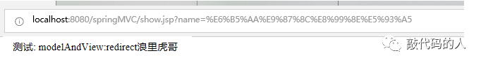 @RequestMapping(value = "forward_test01")public ModelAndView forward_test01(String name, Integer age) {ModelAndView model = new ModelAndView();//如果需要传递参数,需要直接使用HttpServletRequest//因为使用String框架不帮助我们封装System.out.println("forward_test01 : " + name);model.addObject("name",name);//转发,不与视图解析器一起工作model.setViewName("forward:/WEB-INF/jsp/show.jsp");return model;}