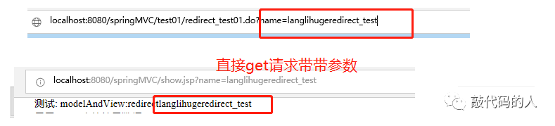 @RequestMapping(value = "string_test01")public String string_test01(String name, Integer age, HttpServletRequest request) {//如果需要传递参数,需要直接使用HttpServletRequest//因为使用String框架不帮助我们封装System.out.println("String_name : " + name);System.out.println("String_age : " + age);request.setAttribute("name",name);return "show";}