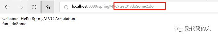 @Controller()@RequestMapping("/test01")public class MyController2 {@RequestMapping({"doSome.do","doSome2.do"})public ModelAndView doSome(){}