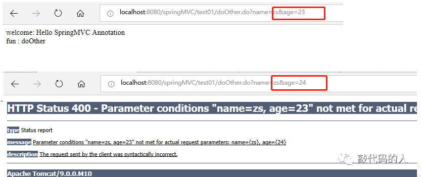 @RequestMapping(value = "doOther.do",params= {"name=zs", "age=23"})public ModelAndView doOther(){}