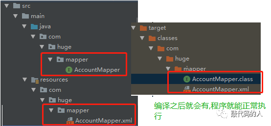 目录只打包源代码,而不会打包其他文件。所以此时如果把对应的mapper文件放到src/main/java