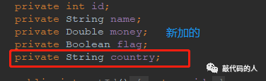 1.故意改造实体类,多添加一个字段country,查询之后设置为china