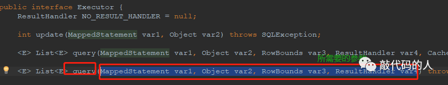 @Intercepts({@Signature(method = "query",type = Executor.class,args = {MappedStatement.class, Object.class, RowBounds.class, ResultHandler.class})})public class MyInterceptor implements Interceptor {@Overridepublic Object intercept(Invocation invocation) throws Throwable {System.out.println("执行自定义拦截器开始====>>>>>>>>>>>>>>");//本该执行的方法Object resutl = invocation.proceed();System.out.println("执行自定义拦截器结束====>>>>>>>>>>>>>>");return resutl;}@Overridepublic Object plugin(Object o) {return Plugin.wrap(o,this);}@Overridepublic void setProperties(Properties properties) {}}