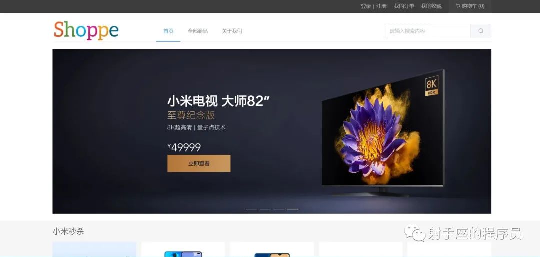 首页主要是对商品的展示,有轮播图展示推荐的商品,分类别对热门商品进行展示。
