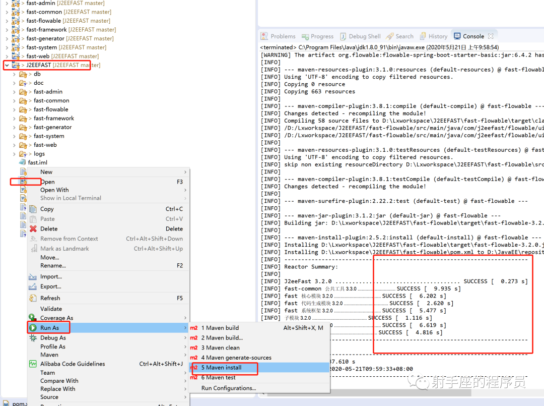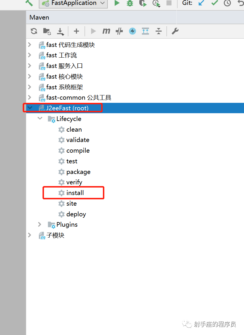 都配置好之后启动 FastApplication、找到admin 模块下FastApplication类 run启动项目。