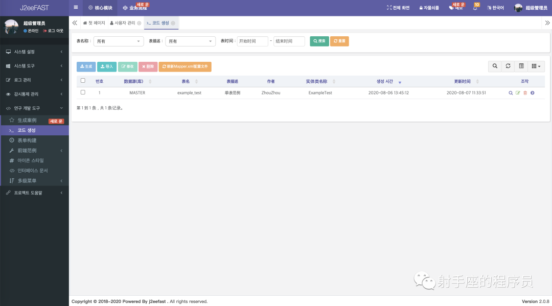 J2eeFAST 是一个 Java EE 企业级快速开发平台, 致力于打造中小企业最好用的开源免费的后台框架平台 。系统基于(Spring Boot、Spring MVC、Apache Shiro、MyBatis-Plus、Freemarker、Bootstrap、AdminLTE)经典技术开发, 系统内置核心模块包含众多常用基础功能(在线代码生成功能、组织机构、角色用户、菜单及按钮授权、数据权限、系统参数、license认证、BPM工作流等), 让你用最低的成本、最高的效率,开发项目,她也适合新手朋友练手 。同时具备, 界面简洁美观、高效、安全、源码可控、版本迭代快、免费技术交流群 等特点。她适用于所有Web应用,她会成为你快速开发项目的好帮手。