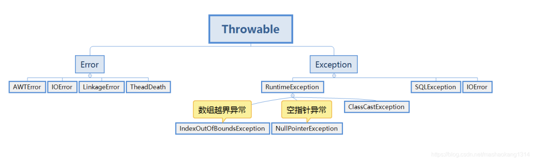 java把所有非正常情况分为两种:异常(Exception)和错误(Error),都集成Throwable父类。