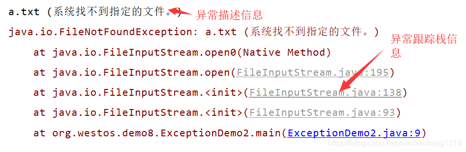 使用throws声明抛出异常的思路是,当前方法不知道如何处理这种类型的异常,该异常应该由上一级调用者处理;如果main方法也不知道如何处理,则抛给JVM处理。JVM对异常的处理方法是打印跟踪栈信息,并中止程序运行。