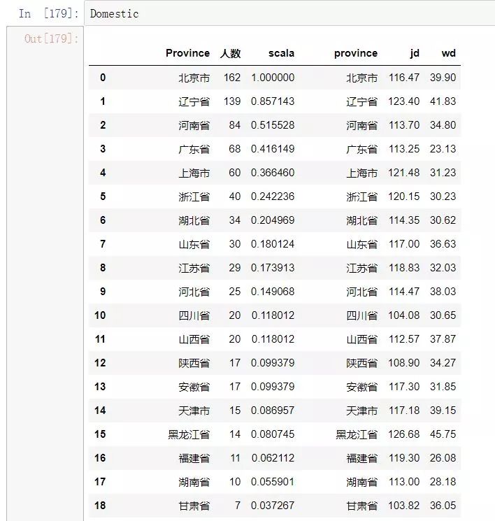 Domestic = Domestic.merge(point_data.loc[:,["province","jd","wd"]],how = "left",left_on = "Province",right_on = "province")