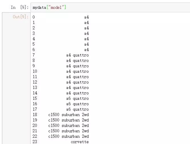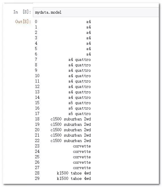 mydata["model"] #在R语言中应该写mydata[,"model"]或者mydata["model"]