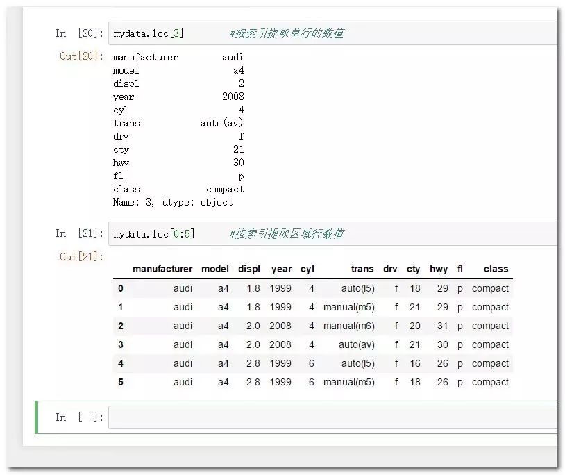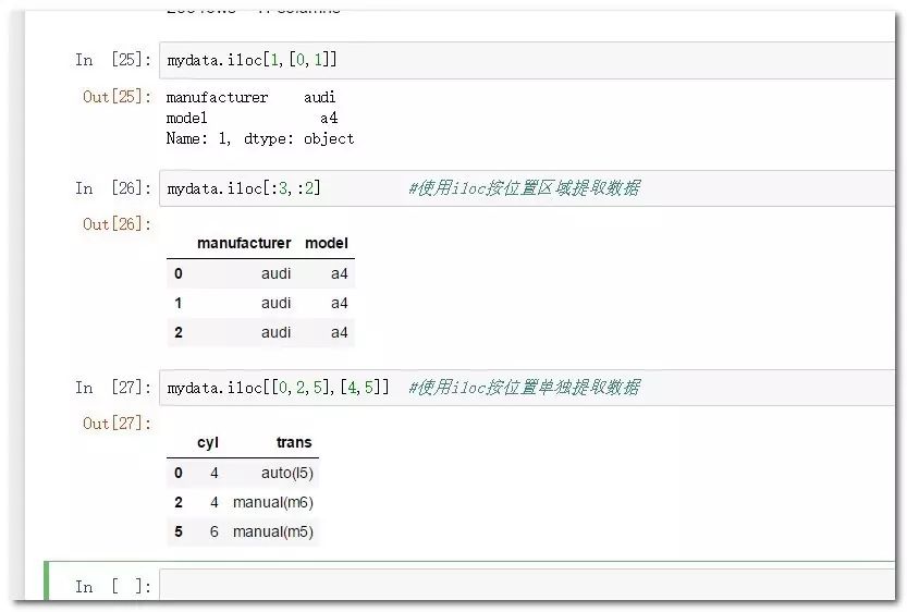 mydata.iloc[1:] 等价于mydata.iloc[1:,:]