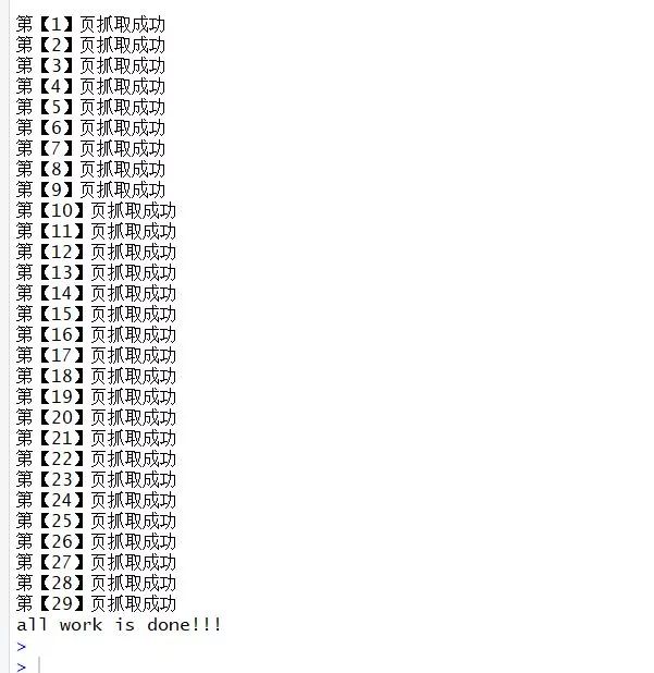 #但因当前任务进度 cat(sprintf("第【%d】页抓取成功",i),sep = "\n") } else {