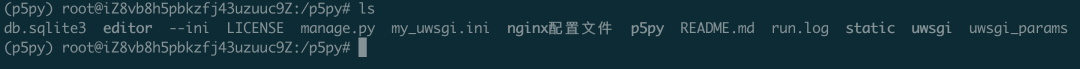 (p5py) root@iZ8vb8h5pbkzfj43uzuuc9Z:/p5py# touch uwsgi.ini