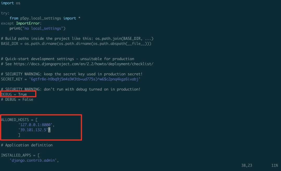 第一步,把 DEBUG 改为 False: