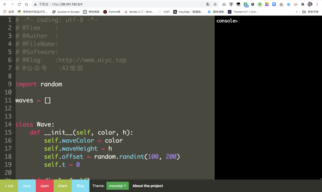 也能运行代码、保存、分享。