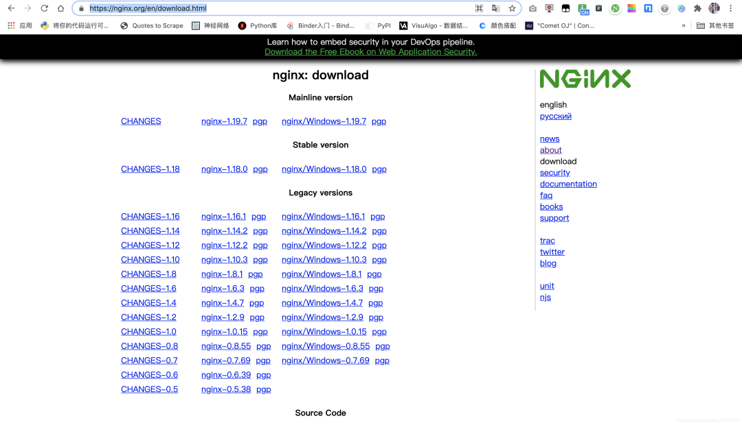 Nginx 官网下载:https://nginx.org/en/download.html