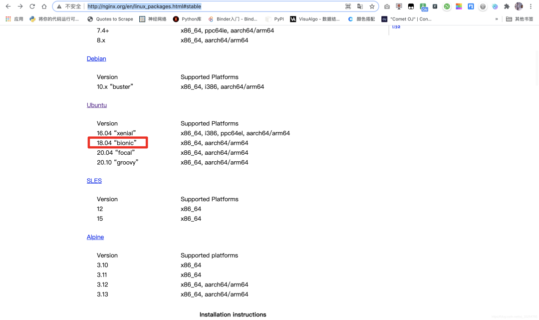 Mainline version:正在开发阶段的版本,可能会有漏洞。 Stable version:稳定版 Legacy versions:历史版本 本次安装1.18.0的稳定版本