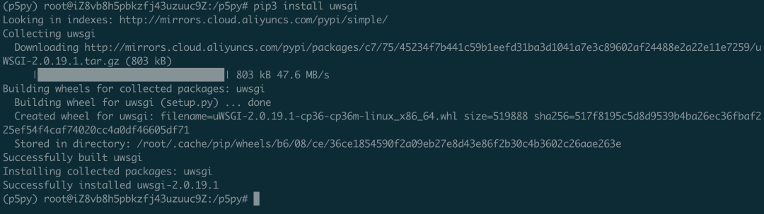 (p5py) root@iZ8vb8h5pbkzfj43uzuuc9Z:/p5py# mkdir uwsgi && cd uwsgi