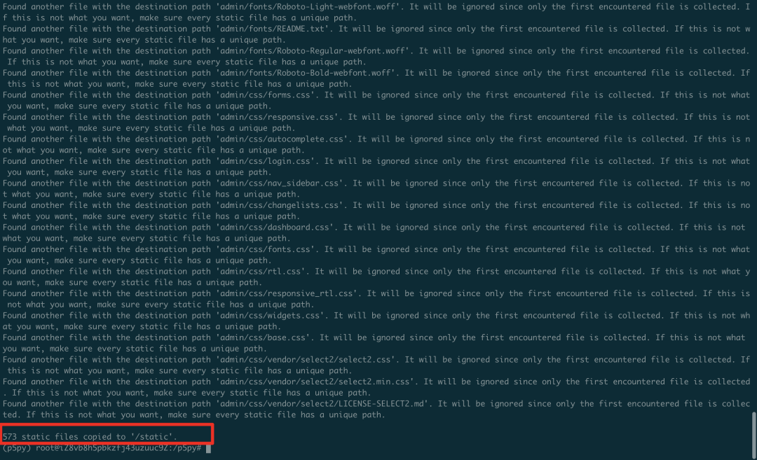 (p5py) root@iZ8vb8h5pbkzfj43uzuuc9Z:/p5py# python3 manage.py collectstatic