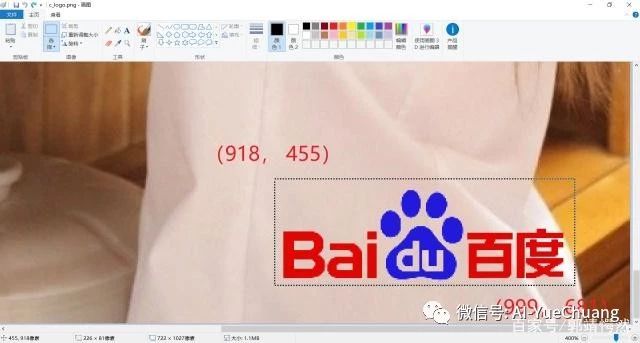 提取ROI:我们在画图中打开图片,放大之后将鼠标停留在图片中某一位置即可在左下角查看到具体的坐标。使用切片roi = img[918:999, 455,679]提取ROI,需要注意的是图片坐标与二维数组位置是相反的,图片坐标(x, y)中x表示像素点到图片左侧的距离,y表示像素点到图片顶部的距离,而二维数组位置(x, y)中x表示该像素点所在行数,y表示该像素点所在列数,两者虽然都是两个数字,但顺序正好相反。