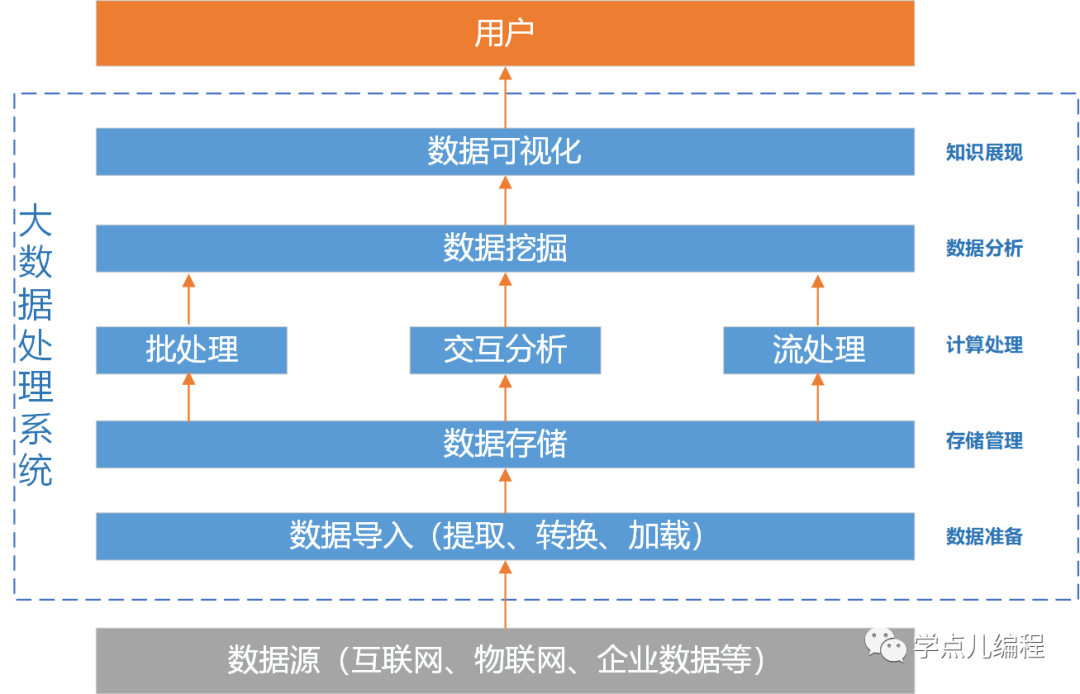 什么!你觉得这个图不好理解?那我举个例子吧:想一下你平时的做饭过程,买菜(数据采集/准备) - 放菜篓或冰箱(数据存储) - 洗菜(数据处理) - 配菜(数据建模/分析) - 炒菜(数据加工) - 上菜(成果展现) - 顾客/家人(用户)。这样是不是好理解一些。