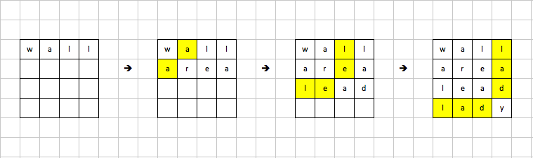 方法:建立square的时候同时检查合法性。Example: ["area","lead","wall","lady","ball"]