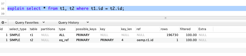 包含不适合其他列中显示但十分重要的额外信息 id, select_type, table, type , possible_keys, key, key_len, ref, rows, Extra