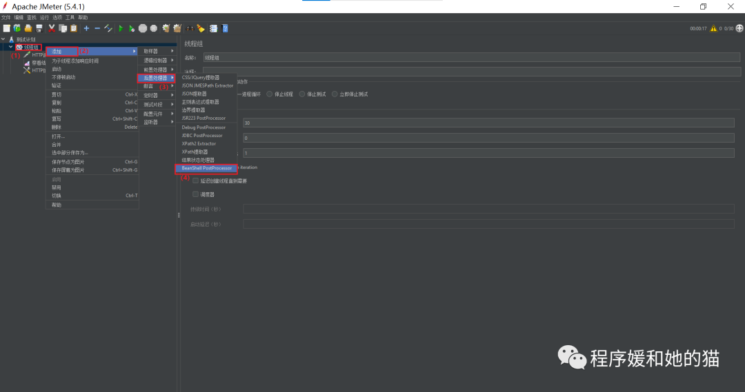 右键点击 “刚才创建的线程组” → “添加” → “后置处理器” → “BeanShell PostProcessor”