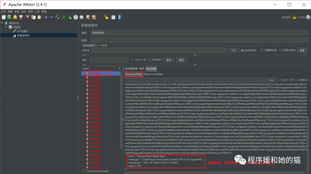 查看请求失败的原因,随便点开一个“HTTP请求”,一般的问题从 “取样器结果”、“请求”、“响应数据” 这三个地方基本都能找到原因。