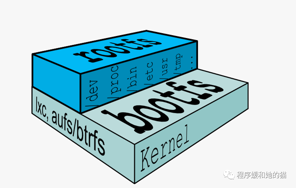 bootfs:在 linux/unix 操作系统中,bootfs 主要包含 boot loader(boot加载器) 和 kernel(操作系统内核),boot loader 主要是负责加载 kernel。linux 刚启动时会加载 bootfs 文件系统,bootfs 中的 boot loader 将整个 kernel 加载到内存,此时内存的使用权由 bootfs 转交给 kernel,之后 bootfs 会被卸载掉,从而释放出它占用的内存。