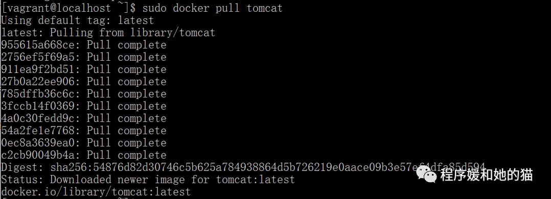 (a)docker pull tomcat,从仓库下载 tomcat 镜像。