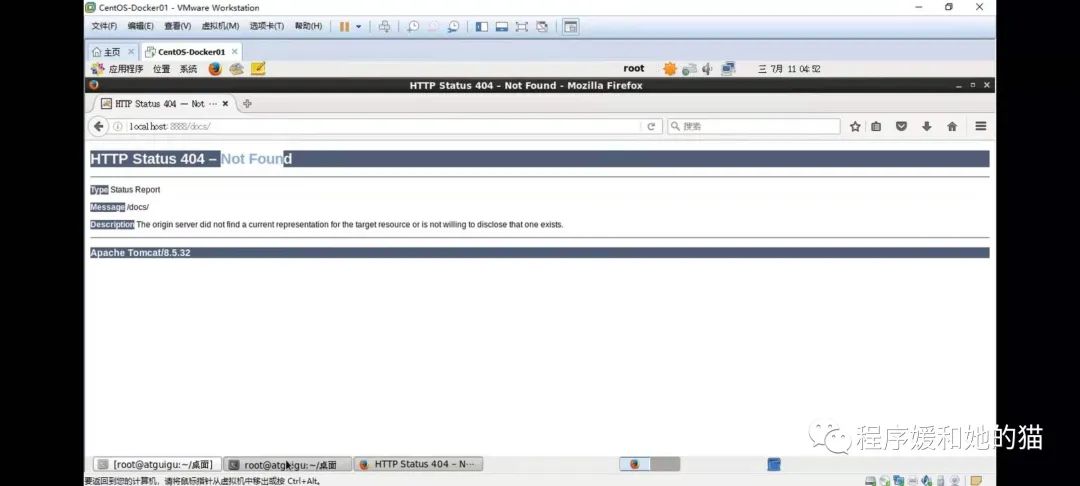 当我们运行新的 tomcat 镜像,并且在 tomcat 运行界面中点击 Documentation 时会报 404 错误的话,说明我们创建的这个新镜像成功了。