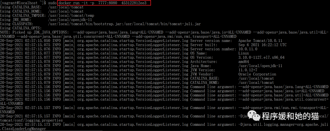 docker run -it -p 7777:8080 453122812ee3(新镜像的镜像ID),运行新的镜像。