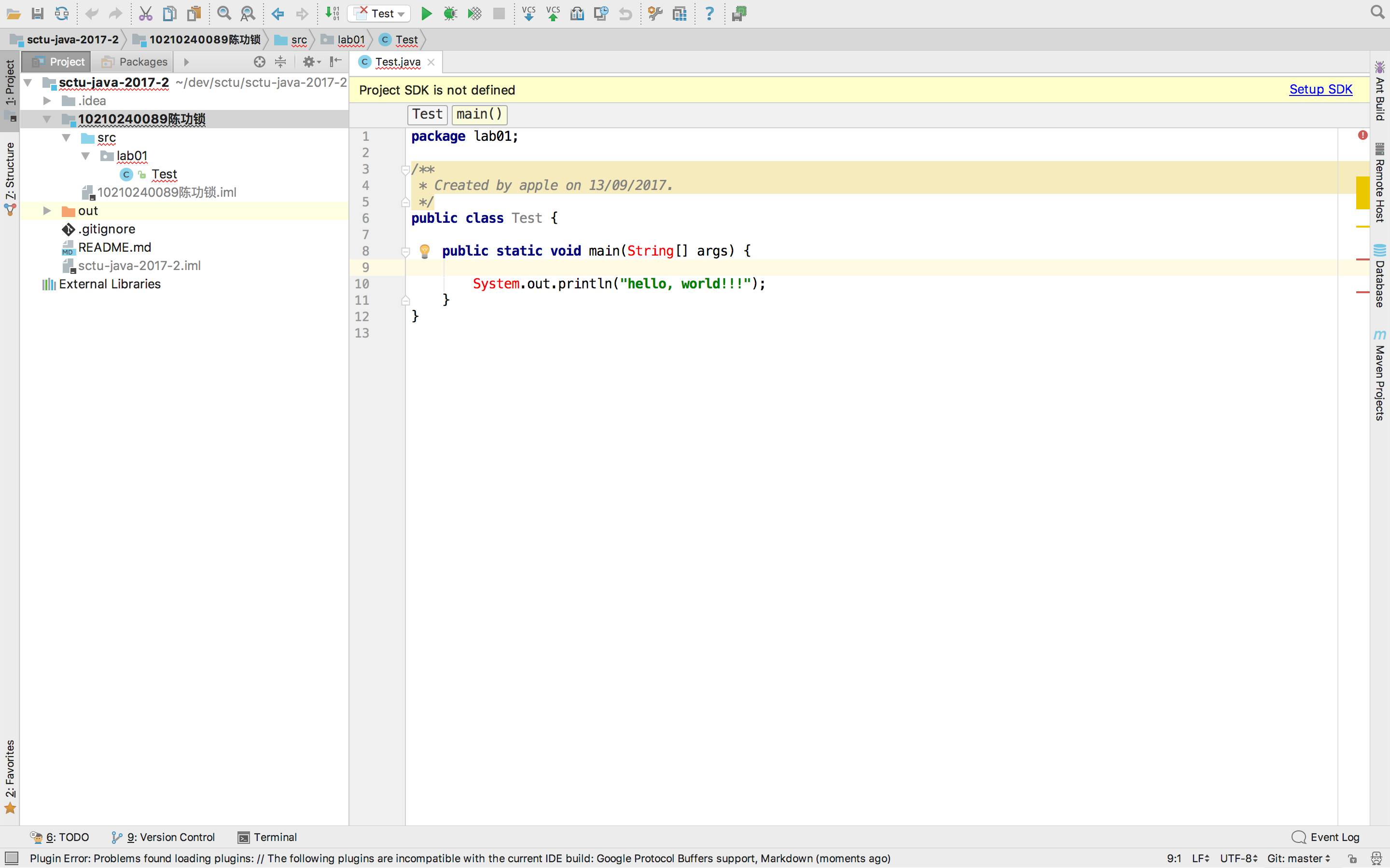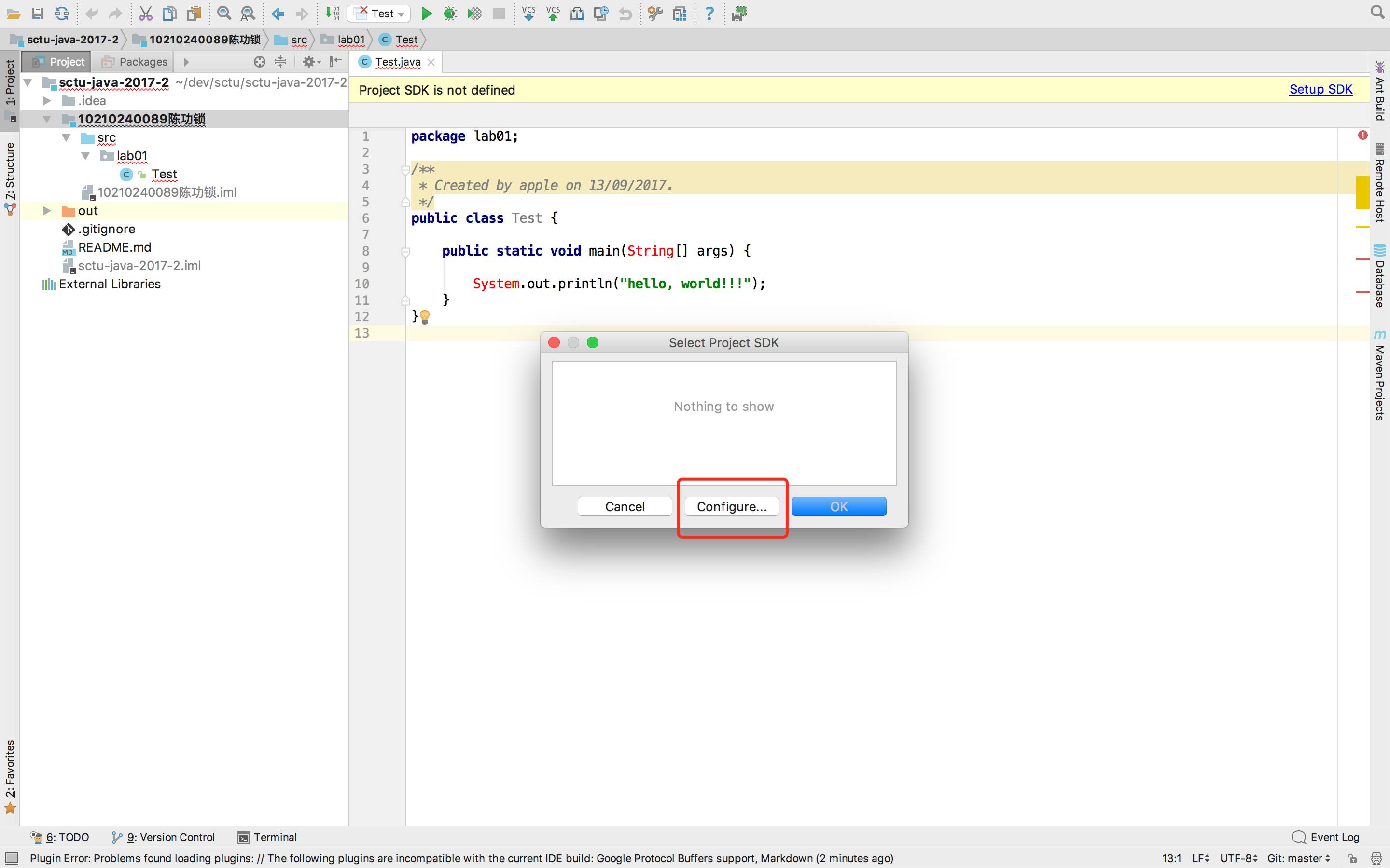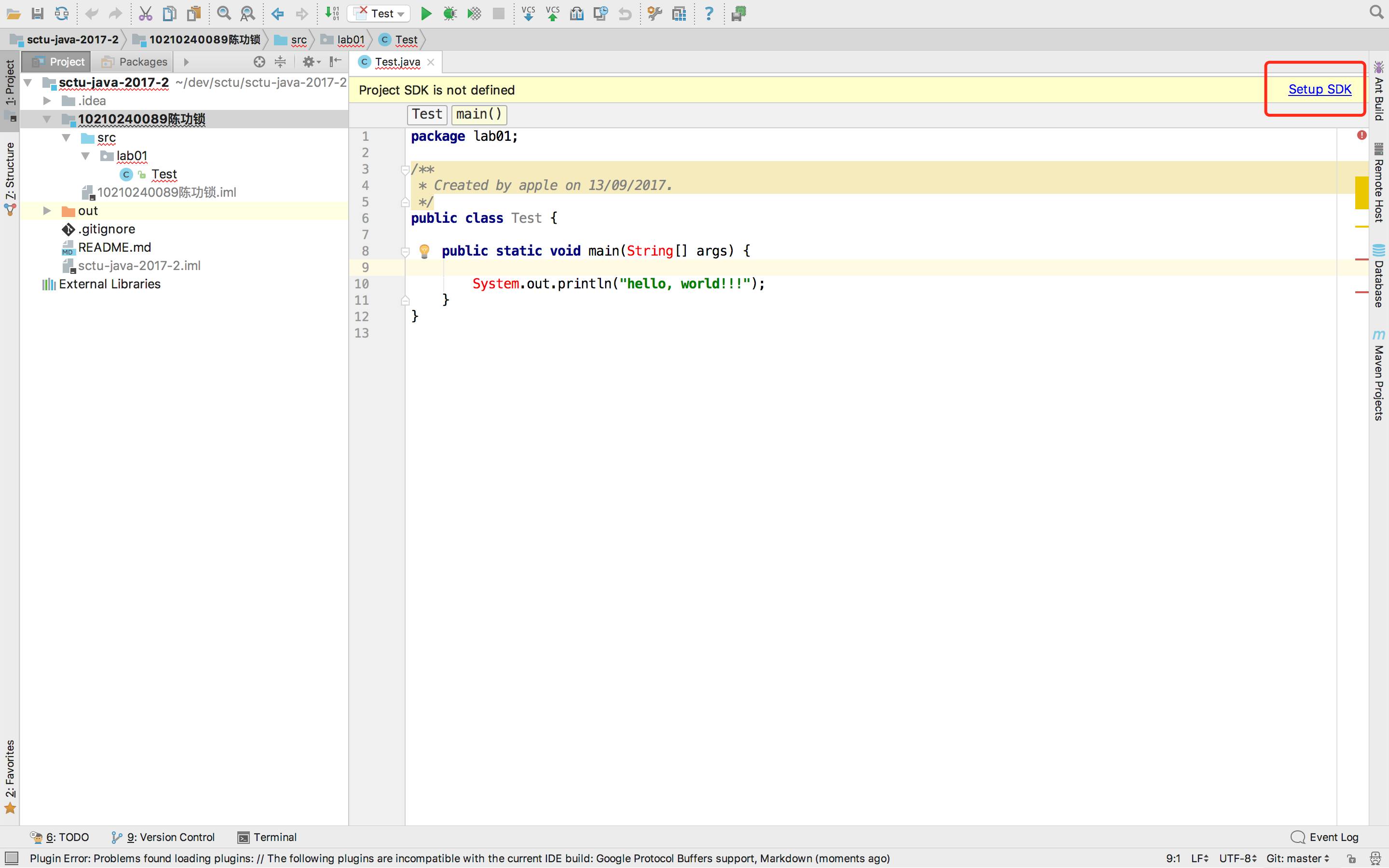 Idea 中所有飘红的地方表示出错了,上述图例也不例外,由于缺少 JDK 的路径导致出错。解决方法如下: