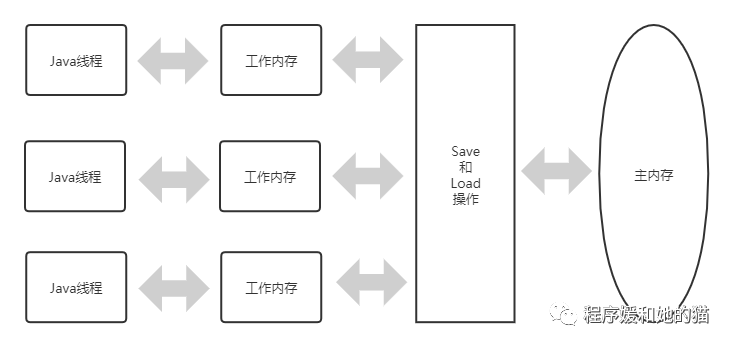 每条线程还有自己的工作内存(Working Memory),该内存是线程私有的,为了方便理解,可以认为是虚拟机栈。可以与前面讲的CPU处理器高速缓存类比。线程的工作内存中保存了被该线程使用到的变量的主内存副本,线程对变量的所有操作(读取、赋值等)都必须在工作内存中进行,而不能直接读写内存中的变量。不同的线程之间也无法直接访问对方工作内存中的变量,线程间变量值的传递均需要通过主内存来完成。