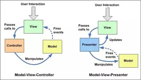 MVP从更早的MVC框架演变过来,与MVC有一定的相似性:Controller/Presenter负责逻辑的处理,Model提供数据,View负责显示。