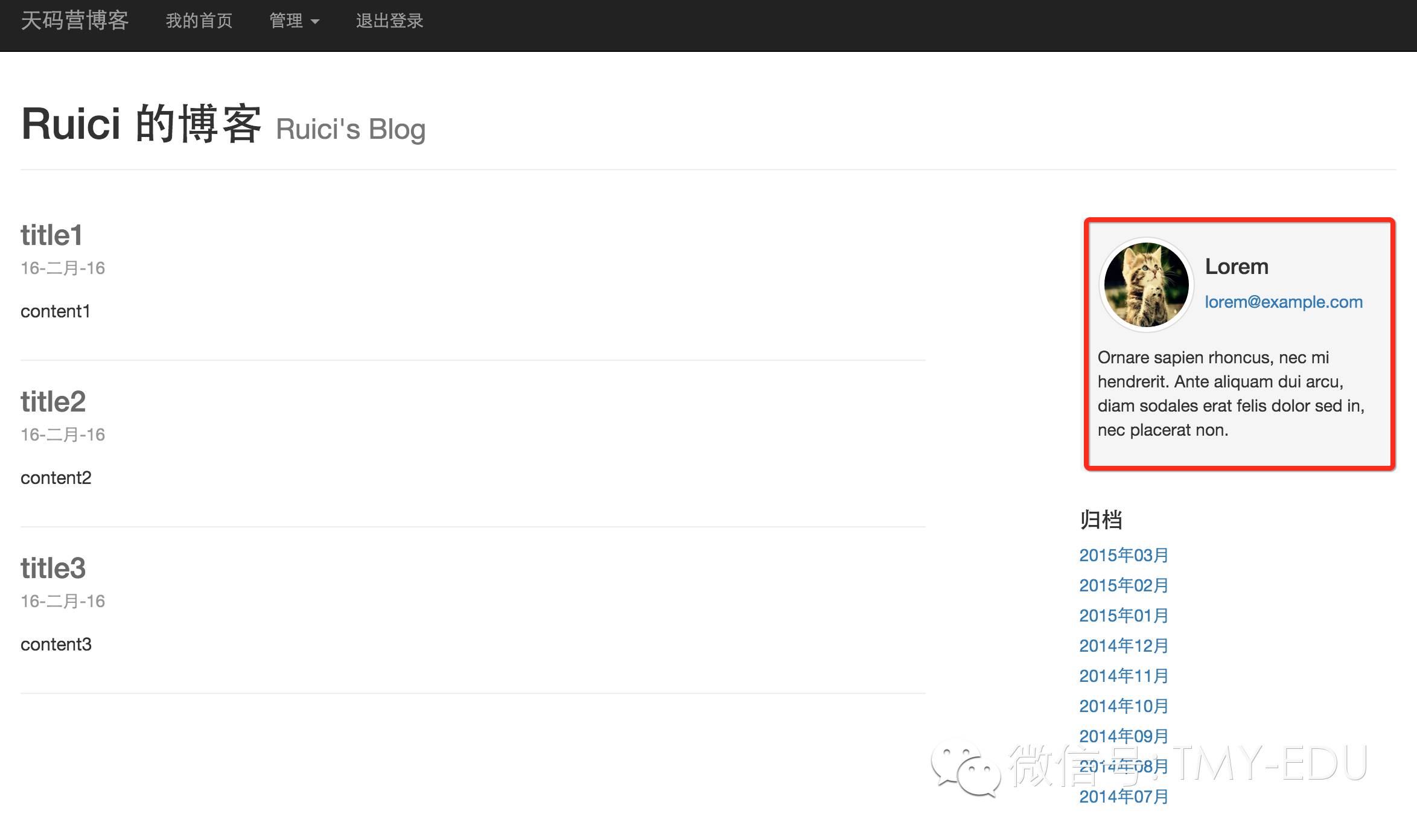 在博客系统文章列表页面,右侧包含了当前博客的用户信息: