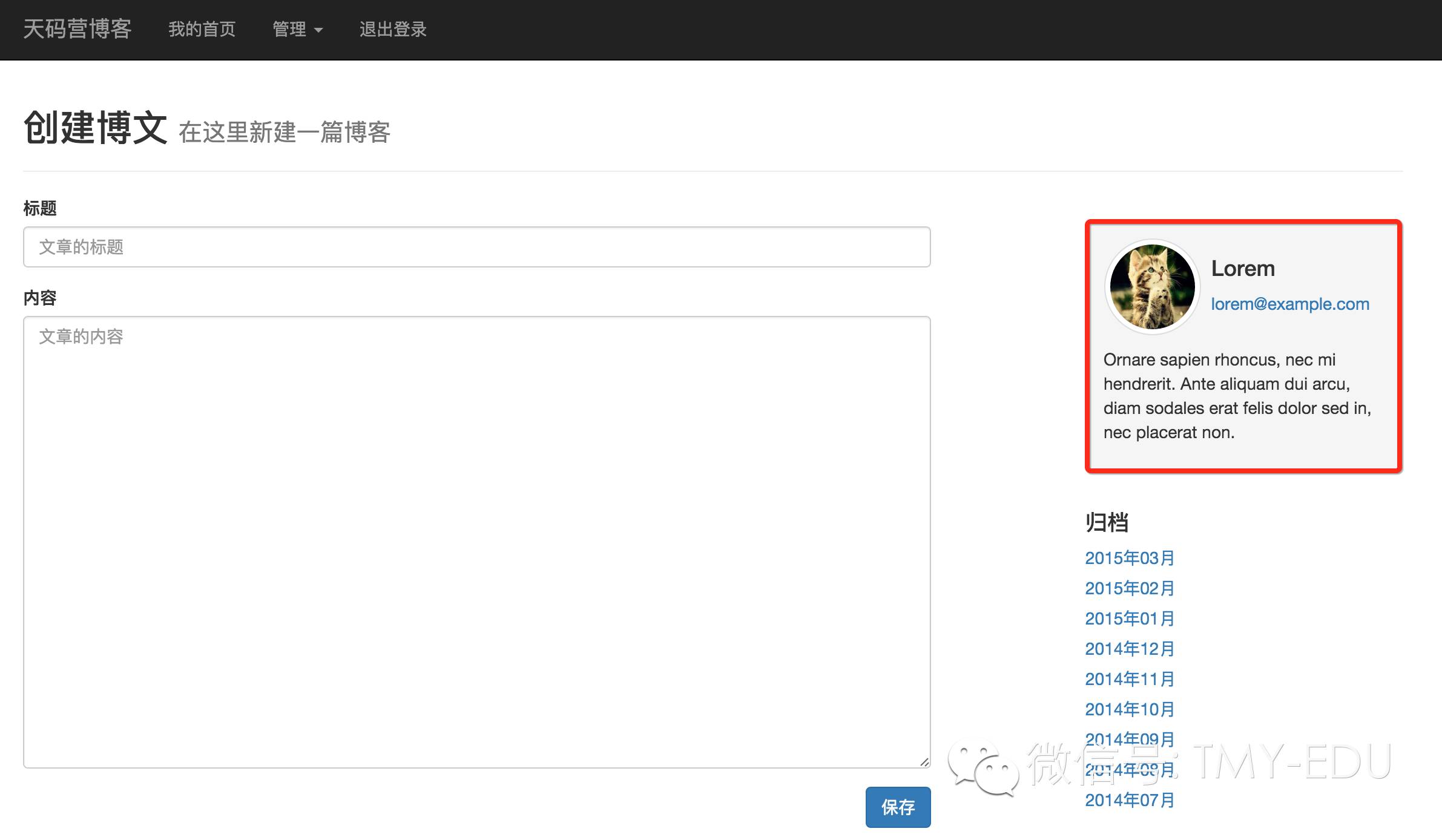 同样,在创建文章页面,也有类似的片段,它包含的是当前用户的信息: